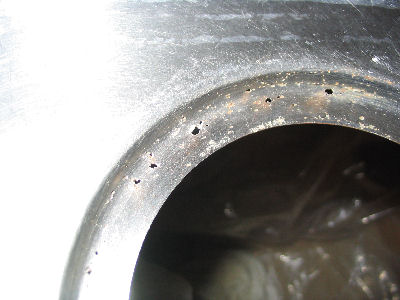 あわてて、取り外して確認すると、写真のように取付部分のフランジがさびて穴が開いています。