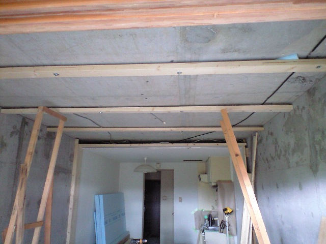 さらに天井は中央が周辺より20mm程度下がっているので、高さ調整のため飼い木をいれました。
