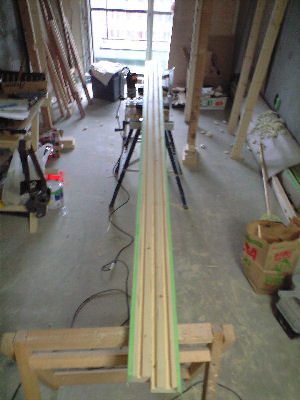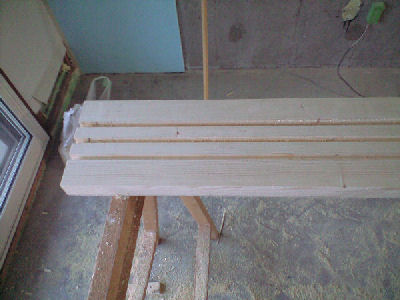 3.本当は溝切りカンナで簡単にできるのですが、そんな高価な道具はないので、汎用のトリマーしかもφ6カッターでW11mm H12mmの溝を3本掘りました。しかも2700もの長さの定規がないので、1m自作定を移動させて掘ったため非常に疲れました。