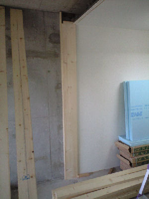 1.最初に壁に垂木等で縦枠固定用の下地をコンクリボンドで貼り付けます。これにねじ止めします。しろうとなので、何回も取付/取り外しを繰り返さないと寸法が合わないので、仕方ありません。