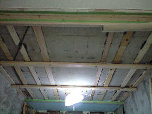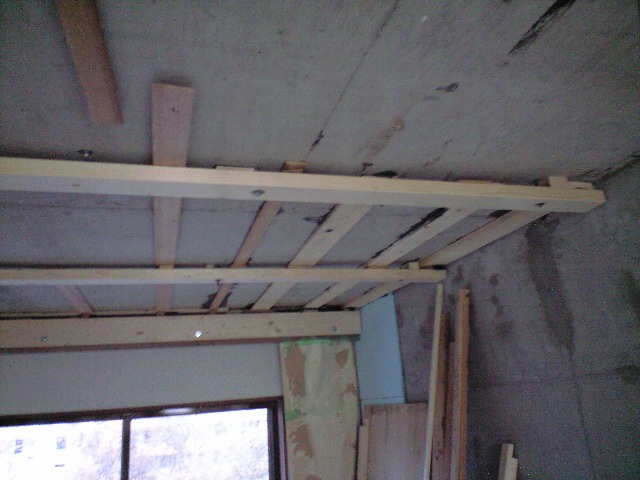 さらに天井は中央が周辺より20mm程度下がっているので、高さ調整のため飼い木をいれました。