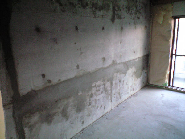 壁は金具跡や打設時の不陸、気泡あとなどあり、でこぼこが多い。