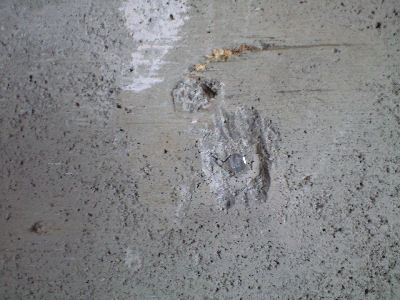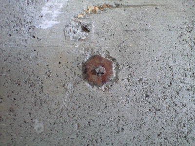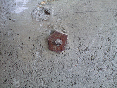 コンクリートを打設するときの金具がうめこまれたままです。